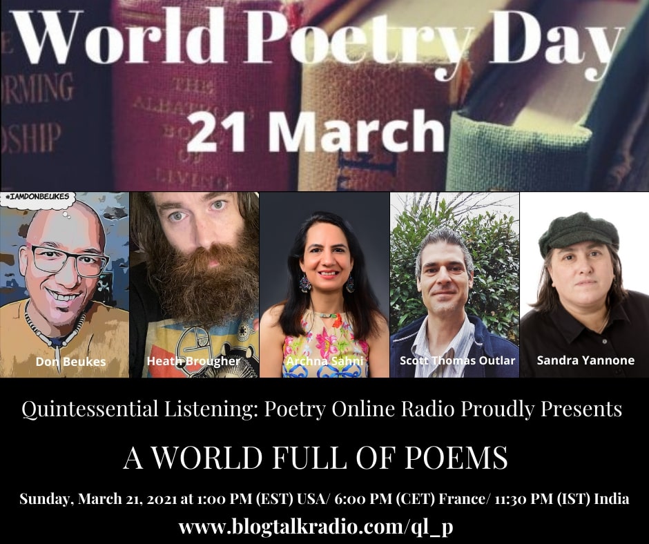 I’m looking forward to appearing alongside my friends, Heath Brougher and Don Beukes later this month for a World Poetry Day celebration on Quintessential Listening…
